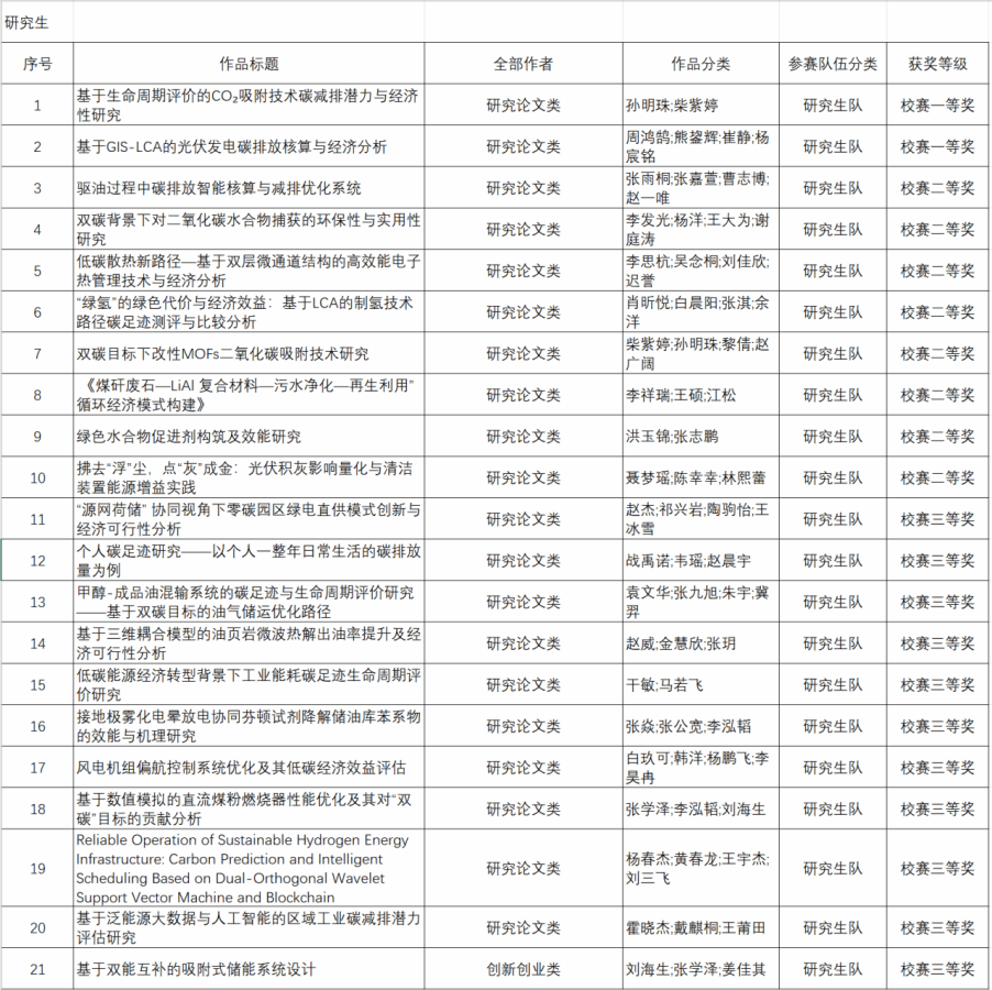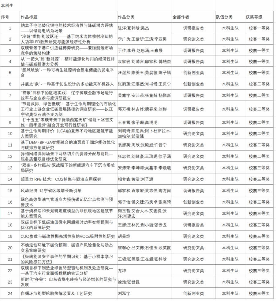附:第十二届全国大学生能能源经济学术创意大赛辽宁石油化工大学获奖名单